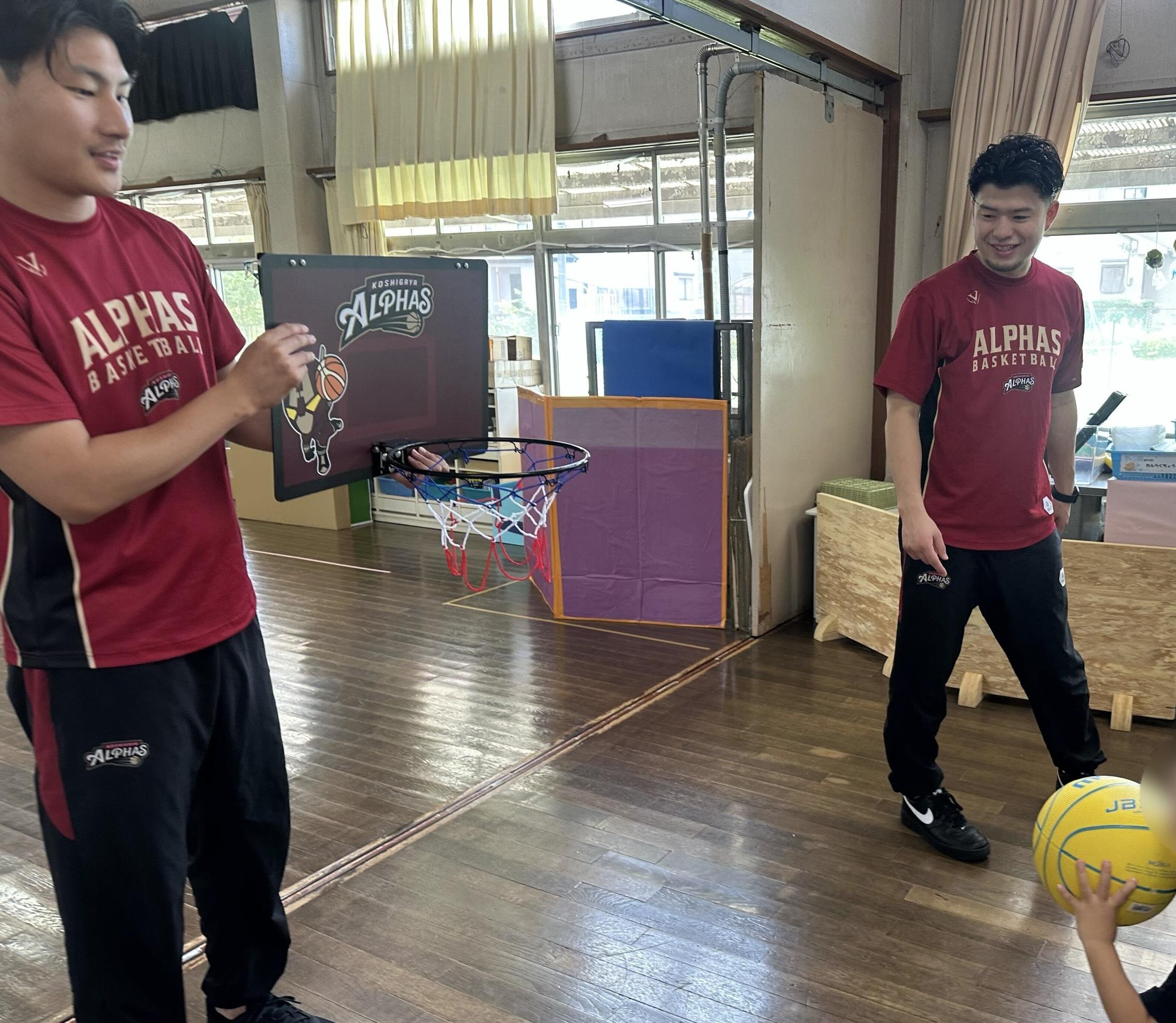 越谷アルファーズユースコーチが保育所を訪問しバスケット体験を行う活動